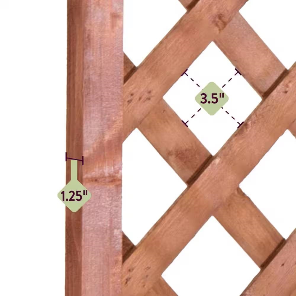 This 6-Foot Outdoor Garden Trellis with Classic Lattice in Brown Pine Wood doubles as both décor and support for climbing vines. The lattice gives vines plenty of vertical growing space. The wood is color-treated to resemble walnut. The size is perfect for a garden bed or large planter. This durable wood trellis arrives pre-assembled and ready to use. Simply push stakes into the soil and loosely wrap vines up the supports.