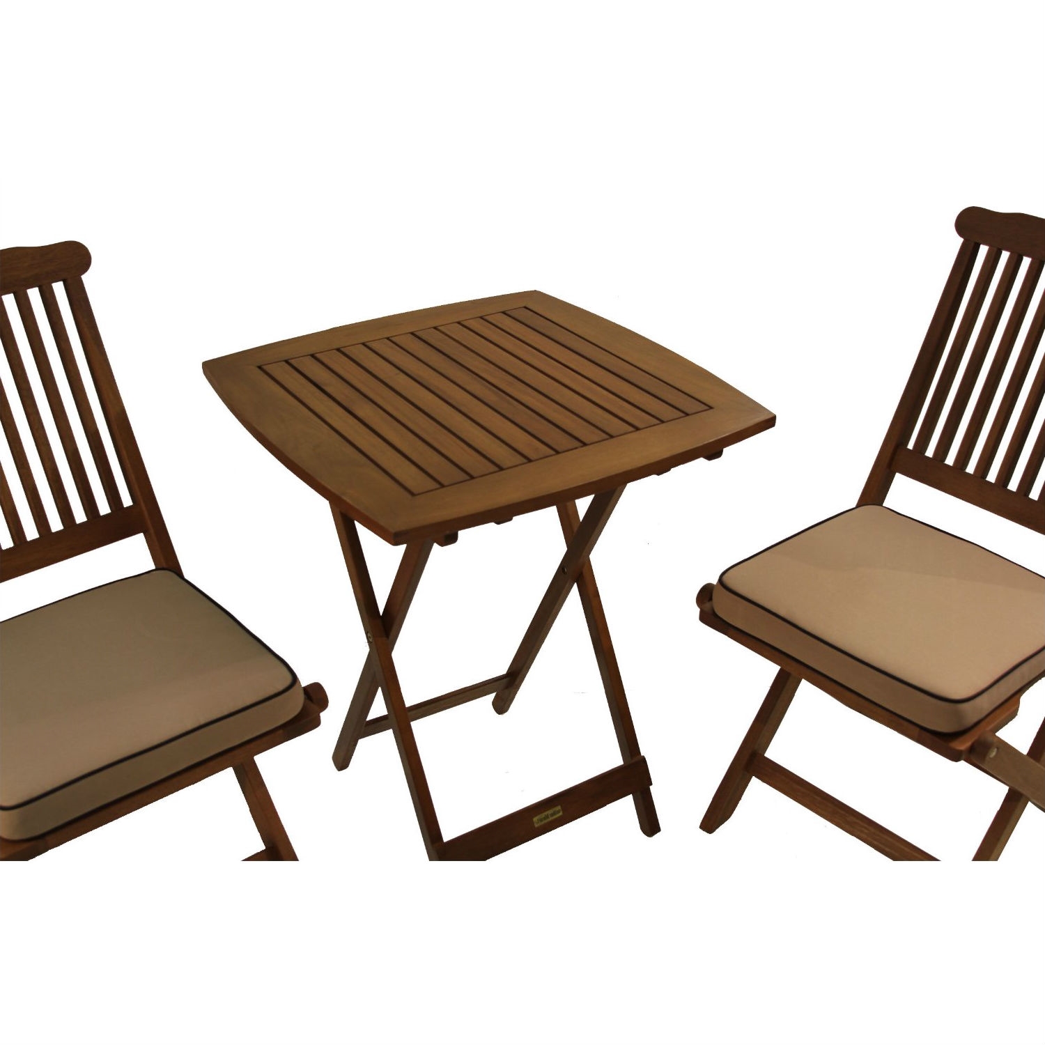 • The Outdoor Interiors Eucalyptus 3-piece bistro furniture set is ready for immediate use as it comes fully assembled